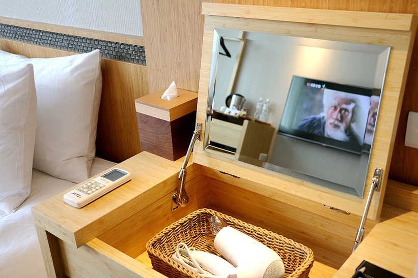 桌面一打開 就有水水們最需要的鏡子 吹風機也藏在這邊