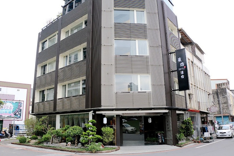 這次來的是東旅湯宿走的結合時尚與日式禪風風格 建築外觀以黑 灰色為基調