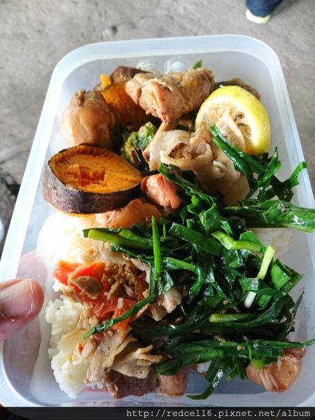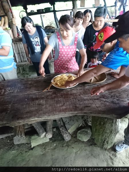 【▼】午餐時間讓大家品嚐原住民風味餐來補充體力。