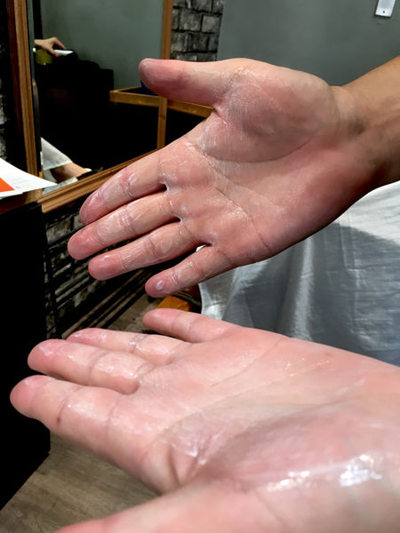 同樣強調無毒以即不作動物實驗的系列產品還有OLAPLEX,對受損髮質從根本進行結構式修護、重新聯結斷/受損頭髮的化學鍵結構,從左到右依序三劑,第一劑加在染劑,第二劑洗護用,第三劑則是居家日常保養用。一般的護髮產品需要高頻率的使用,OLAPLEX結構還原是從化學結構上改變頭髮的"體質',效果更持久;老實說當下我還不知道這個護髮神器的威力,隔天洗完頭後只有驚艷!! (在請耐心繼續往後閱讀...) Allan先幫我在髮根塗染劑、停留一下再推到髮根,過色很快,還不用烘!非常有效率,也許是頭皮已經有做隔離、有可能是因為染劑很溫和,我頭皮一點也不覺得刺癢。
