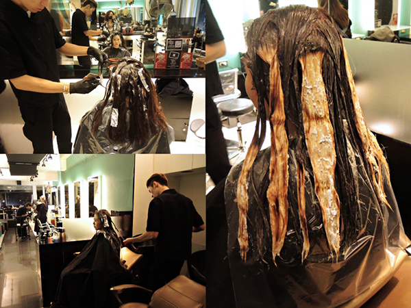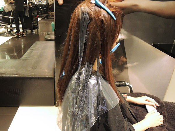 頭皮上的保護膜上完後就開始進行漂髮囉!