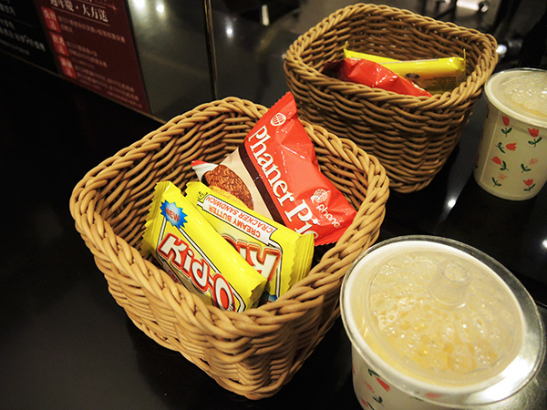 奧創店內有提供白開水與蜂蜜水,等待的時候還拿了兩籃零嘴給我們XD