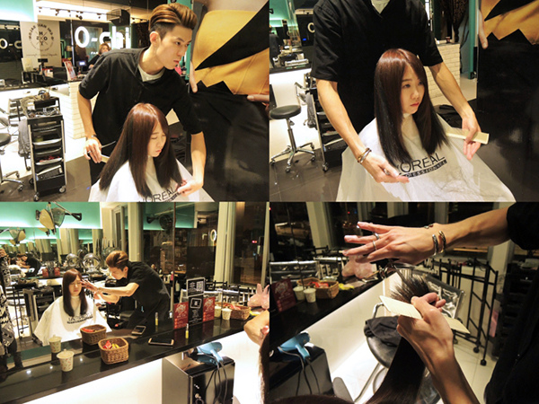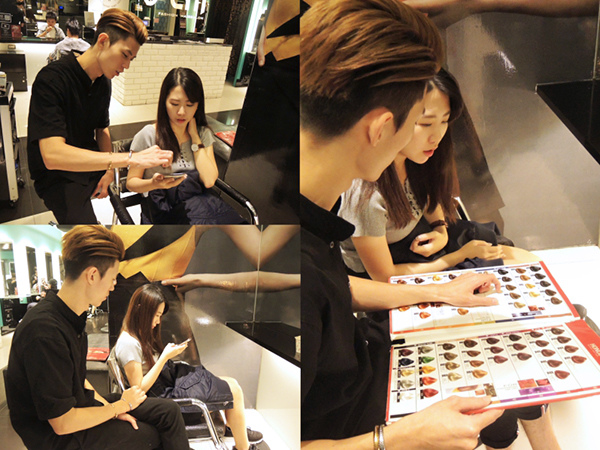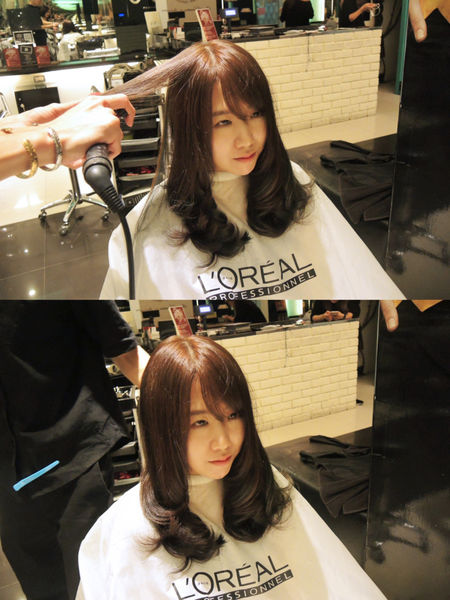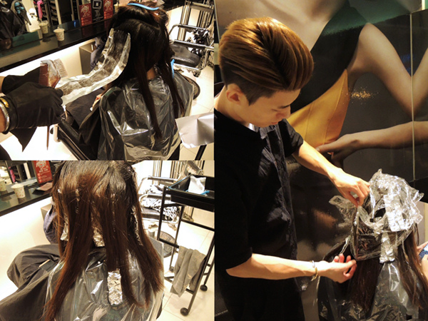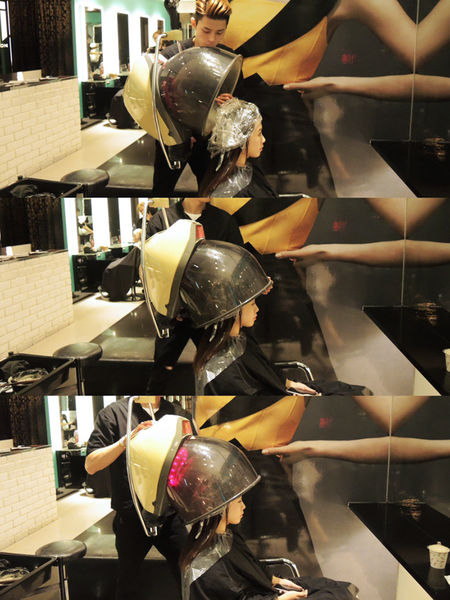 上好漂劑後會先烘約十五分鐘,過程中還不斷過來詢問小泰妍會不會頭皮不適,好貼心~~~~