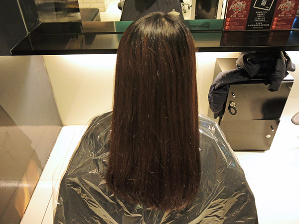 以不更改長度的情況下修剪頭髮,讓頭髮全部撥到後面時會呈現自然漂亮的弧形