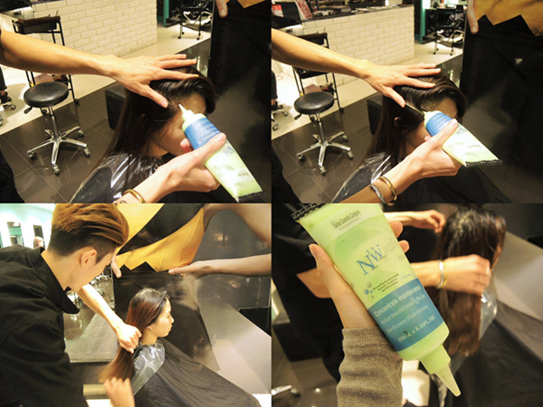 第一罐在染色後先使用,修護受損頭髮質後前往洗頭區