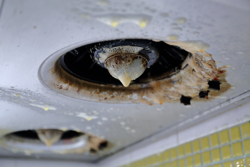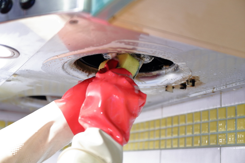 印象中從搬進這個家來,就沒有真正清過一次,這抽油煙機的濾網和集油槽全是厚厚的油污,看見如此慘