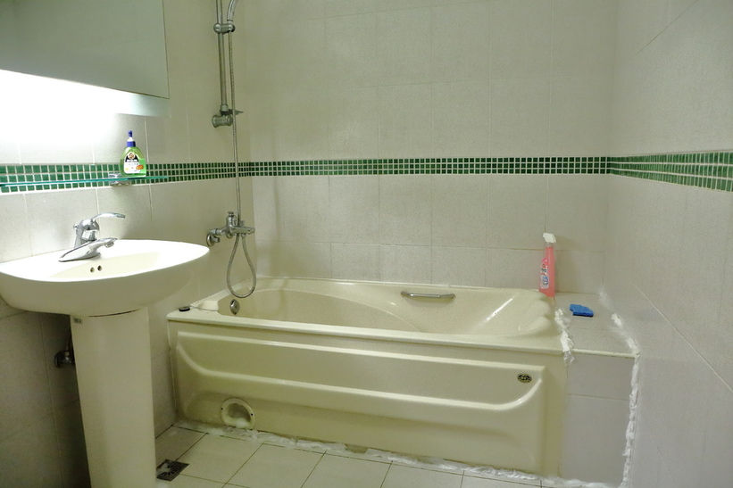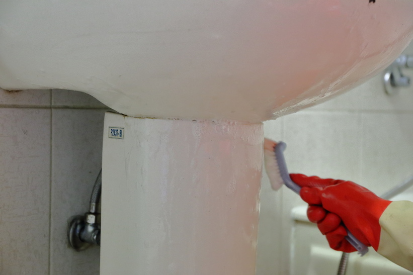 阿姨先大致看了一下我家的狀況,決定先從浴室難搞的細縫頑強的汙垢開始