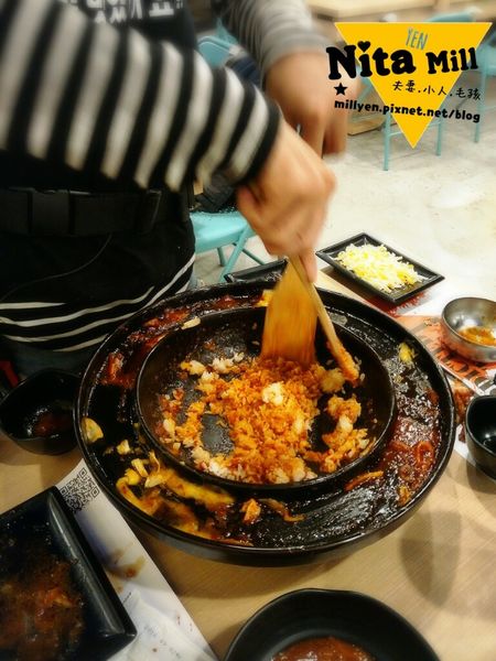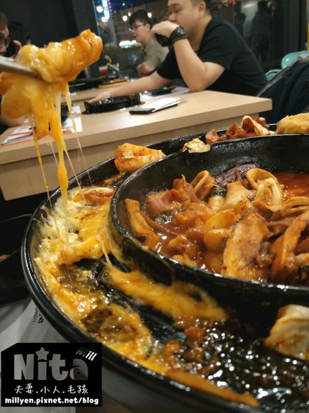 我們點了辛普森湯的起司年糕鍋,是一鍋三吃:起司年糕鍋+年糕炒雞+韓國炒飯