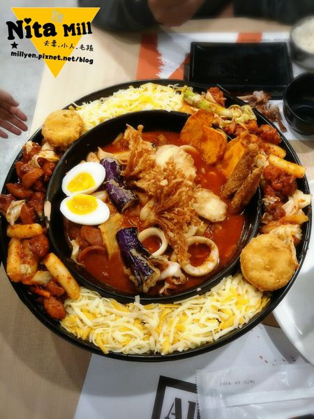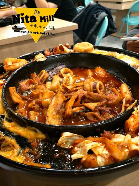 Nita超愛吃年糕,但是又怕辣,以往在其他店家點年糕都會吃的很痛苦,但是OMAYA春川炒雞的辣完全不辣,很香很好吃