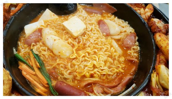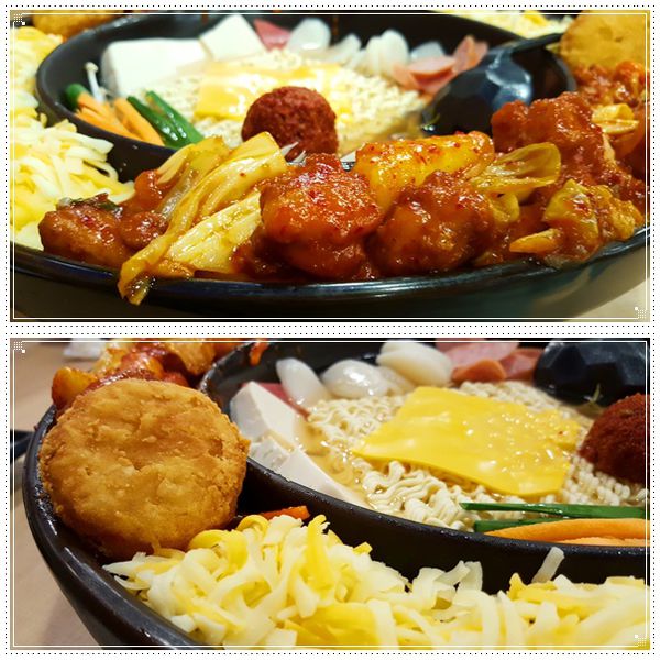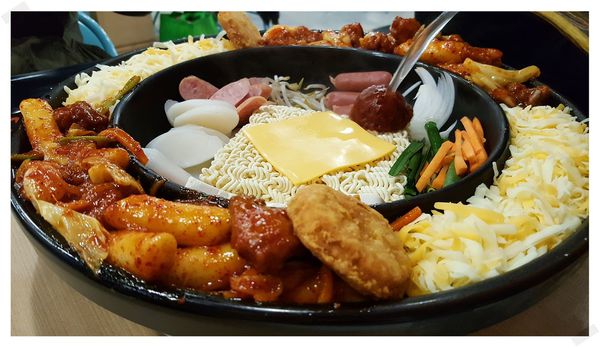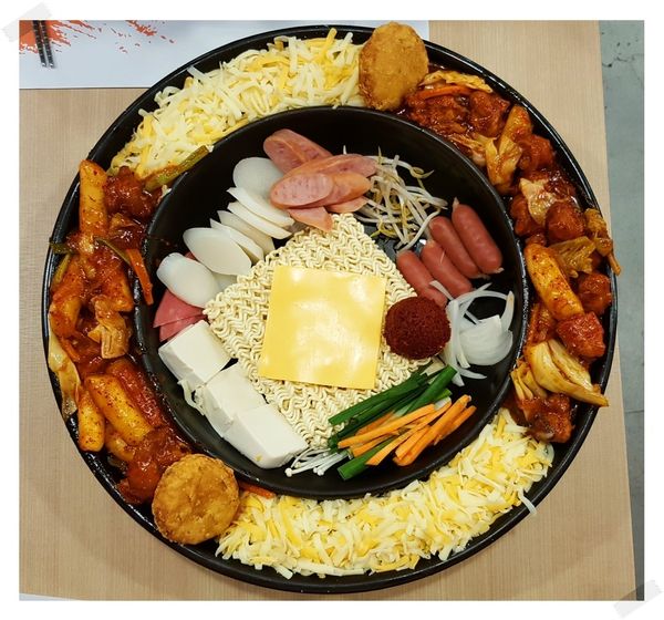 主要是結合韓國傳統年糕、韓國拉麵、熱狗、火腿、午餐肉、焗豆、起士片等各類豐富的食材