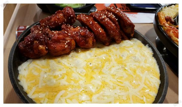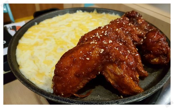 包裹住滿滿的韓式辣醬的雞翅跟棒棒腿 那鮮紅的顏色 讓我忍不住大叫~阿娘威...