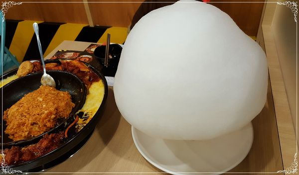 太陽鍋鍋邊周圍還有韓式雞肉 年糕 炸肉餅 起司 整個很豐盛