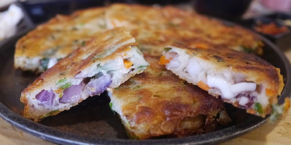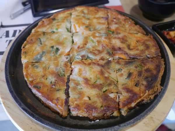 海鮮煎餅也很棒呢!有滿滿的魷魚、洋蔥、胡蘿蔔、蔥,煎得酥酥脆脆