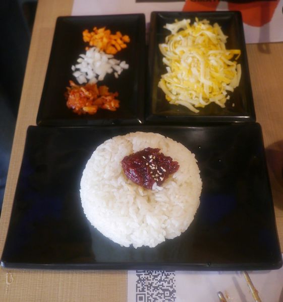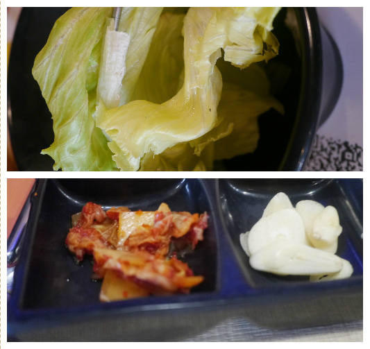 猜到了嗎?原來是送上小菜啦!韓國必吃的泡菜跟蒜頭,可以搭配肉類使用