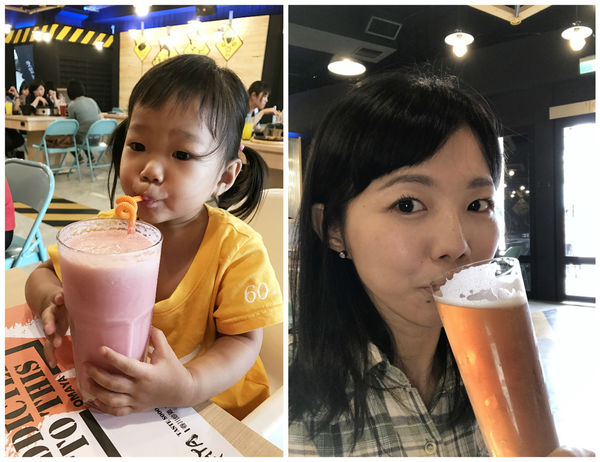 上面還有微微碎冰,冰冰涼涼的現打果汁,果汁一來兩小馬上眼睛亮了