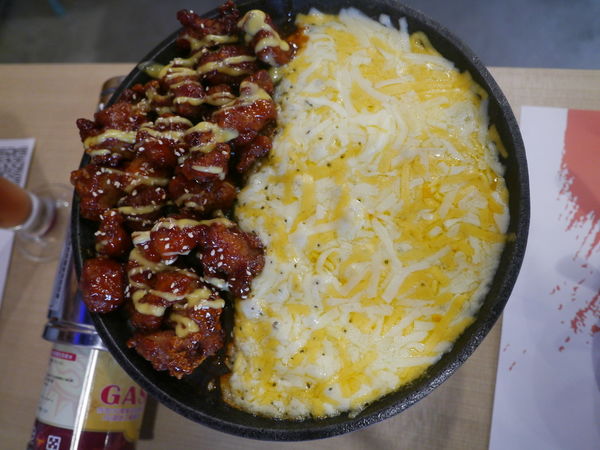 雞丁上面淋滿了黃芥末,雞丁本身帶點辣,很夠味,再沾上旁邊這一堆.....起司河