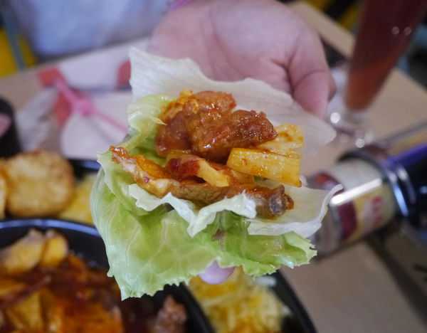 也可以包著生菜吃,油膩中帶著清爽,搭配啤酒,有時候生活中難免有壓力