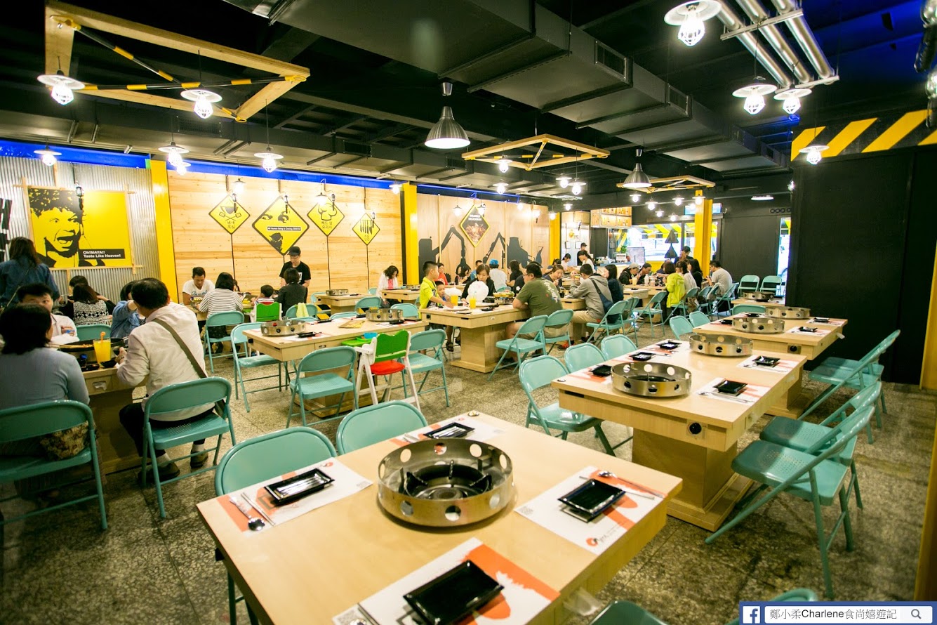 Omaya春川炒雞店面以簡單俐落的黃黑色工業風呈現,