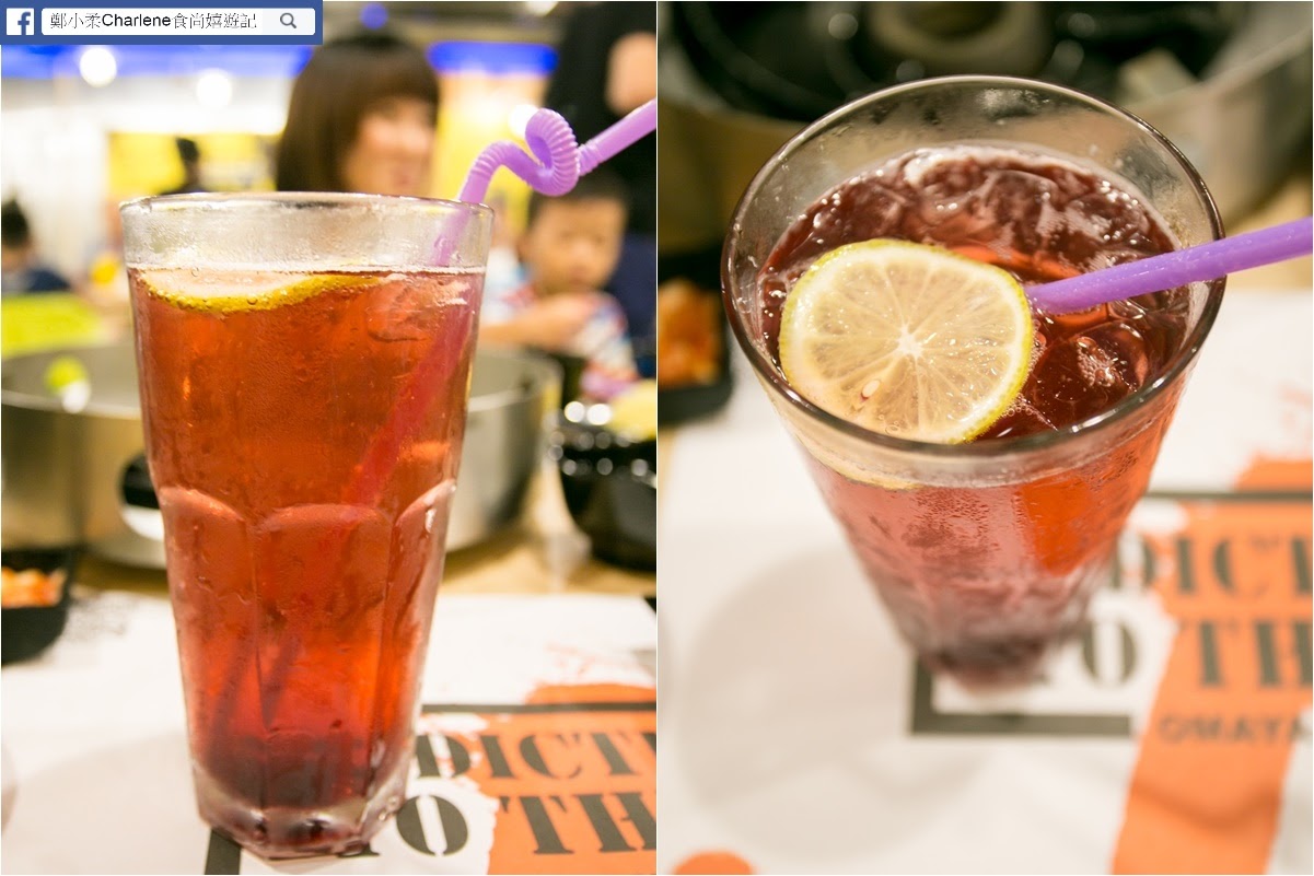 洛神跟葡萄汁混和,意外和搭,酸甜滋味,很解辣XD。