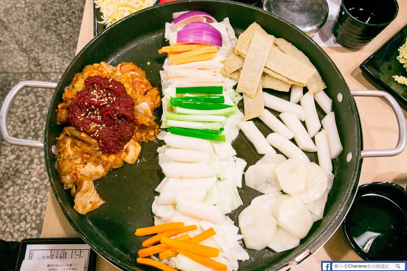 雞排、辣醬、年糕、胡蘿蔔、青蔥、洋蔥、高麗菜、甜不辣等