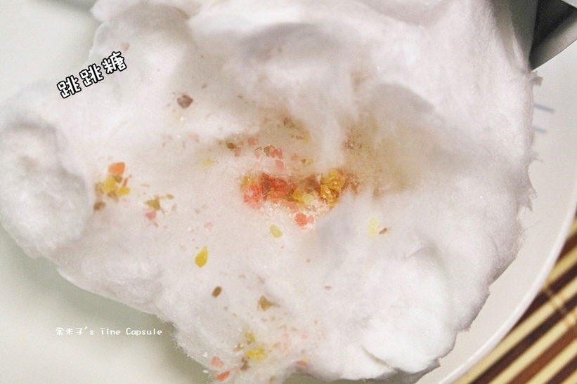 含在嘴裡時慢慢化開的棉花糖及帶著跳跳糖在嘴裡跳躍的活潑感,