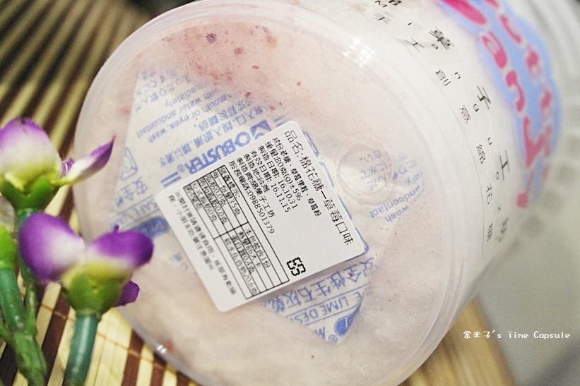 桶子底下清楚的貼上的口味、成分和保存期限的小貼紙,