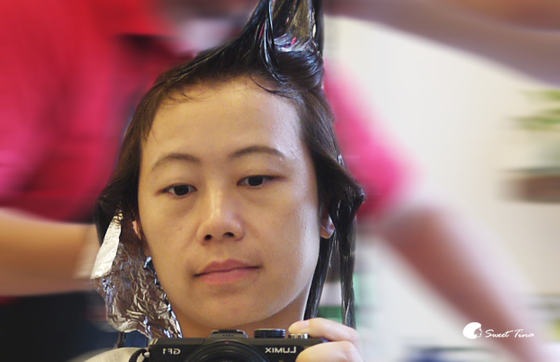 再來就是染髮了,先染髮可以讓上半部和下半部的髮質較平均呢,所以就先處理上面的黑髮部份囉!