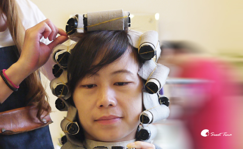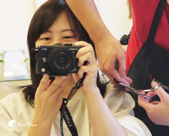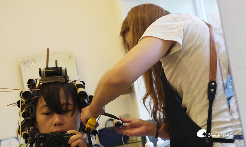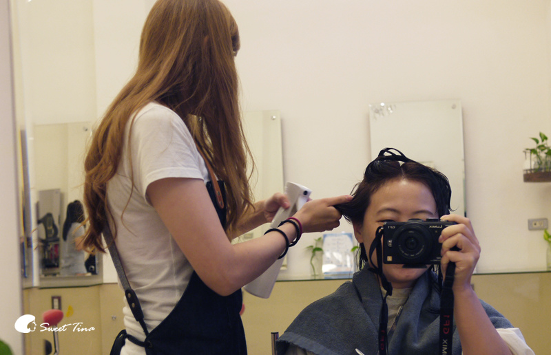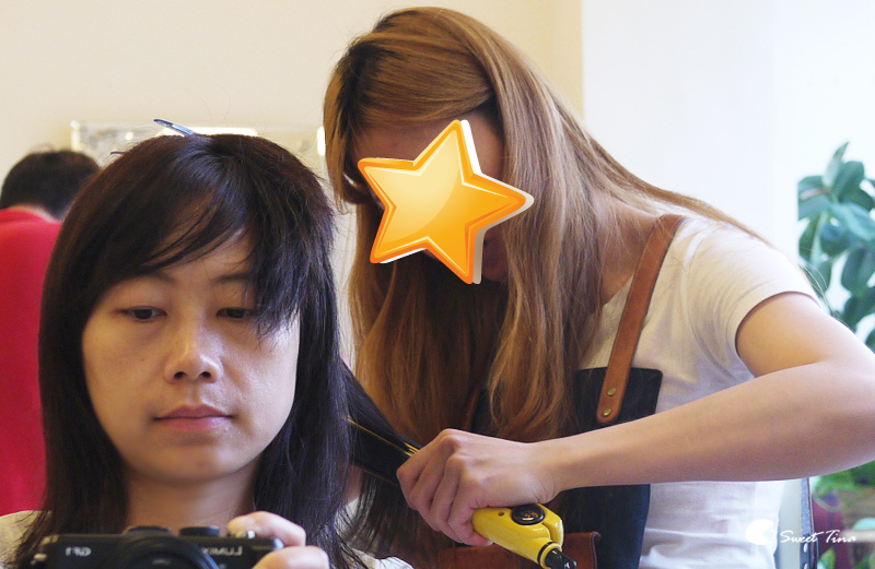 頭髮聽話後,再來就是修剪燙髮後的型了,由於之前在某連鎖髮廊被小小剪壞,所以設計師正在努力的讓Tina燙髮後的髮型更美呢,Chang雖然不願意露臉,但還是把剪髮的英姿與大家分享一下