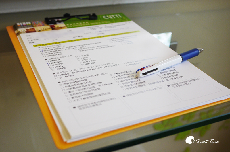 一就定位後,設計師Chang馬上拿了造型諮詢建議表,可以讓客戶清楚表達自己的需求呢~ 但如果你完全沒概念的話,也可以請設計師幫你審視建議,至少他滿抓得住Tina的,用完頭髮接瑋兒時馬上就被詢問去哪做造型的呢~