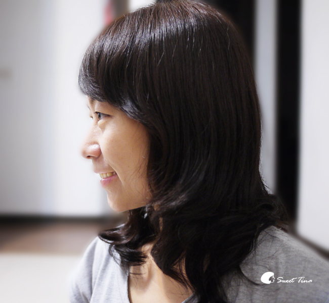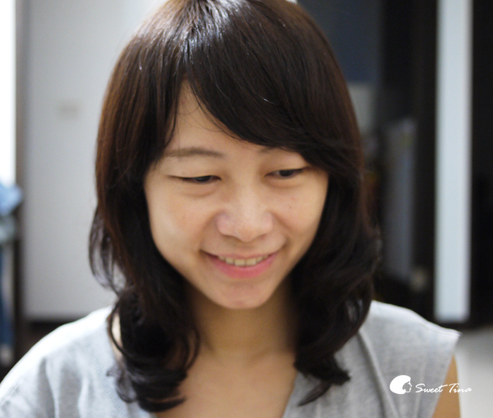 雖然自己沒有像設計師的好手藝很會吹頭髮,但這個捲髮真的很好整理,chang並告訴我只要將髮根吹乾,然後髮尾處抹上護髮素就可以保持自然的捲度了,下面照片中的捲度就是我洗完一次頭髮後呈現的樣子,沒有很會吹頭髮的我,但洗過後的捲度好自然啊~