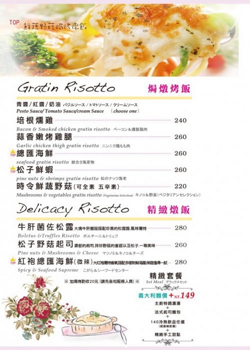 ★精緻套餐系列:加149元就會附上濃湯/麵包/甜點