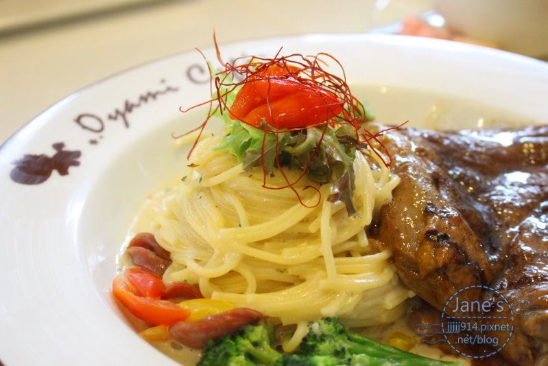 雞腿肉質紮實,帶點油脂香滑順口,搭上Q彈的義大利麵,