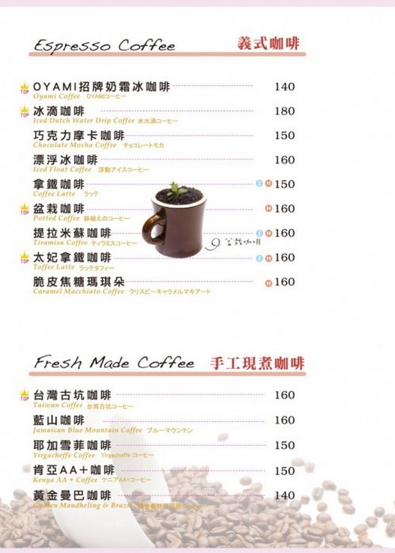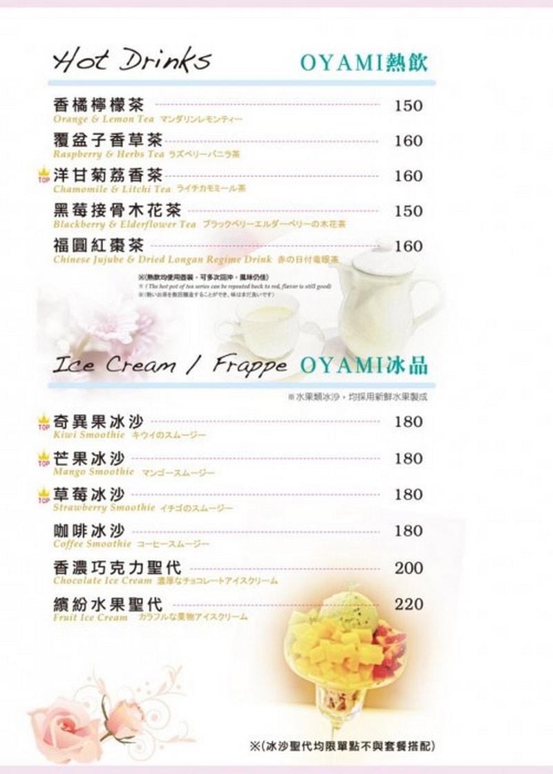 參考一下從網路下載Oyami cafe 菜單,
