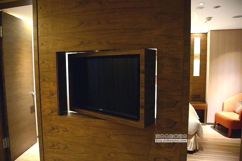 ▼臥房和客廳中間隔著電視牆,而這個電視是可以翻轉的,這樣子在客廳看電視就不會吵到房間裡面睡覺的另一半啦!