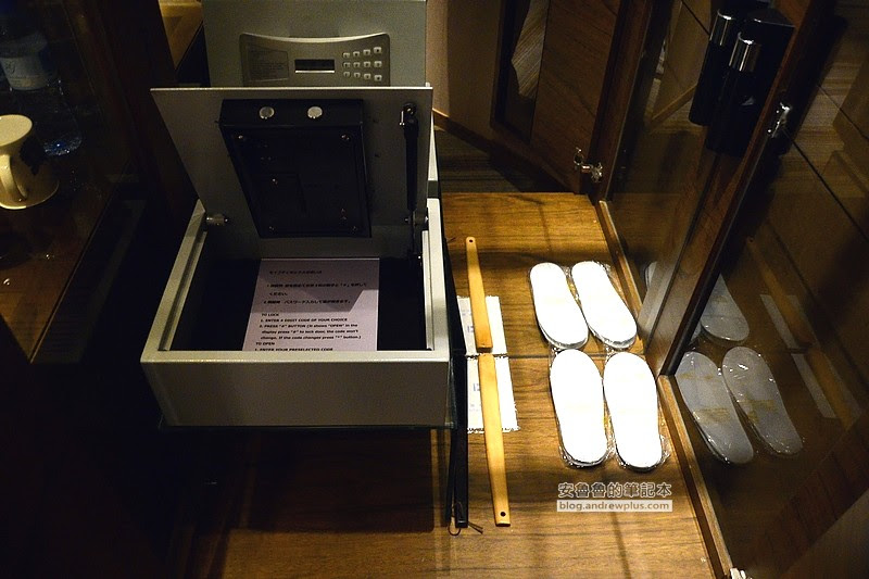 ▼裡面有放置貴重物品的保險櫃,還有鞋拔和紙拖鞋