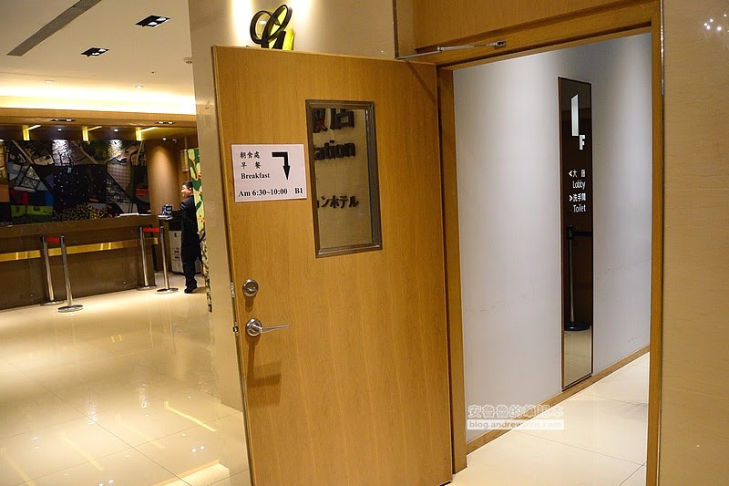 ▼早上六點半起了個大早,整理了一下就來到一樓大廳準備去吃早餐的吧肥了!一出電梯就看到往地下室的門已經打開,上面有清楚的指示早餐餐廳的方向