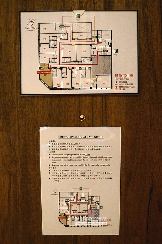 ▼房卡逼一下~就可以開門進房囉! 門後面有逃生指示圖和旅客須知,為了保障安全還是要花點時間閱讀唷!