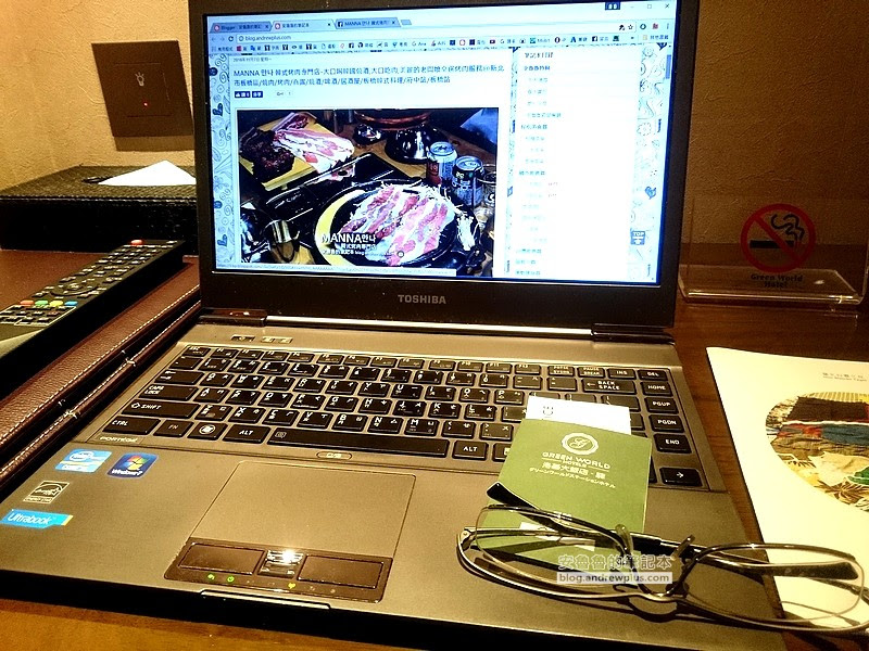 ▼擺上我的13吋NB桌上的空間就幾乎被用盡了,還好還有空間能接上滑鼠操作,不然筆電就不好使了!因為沒什麼也進度壓力,再加上環境美氣氛佳,所以感覺今天寫起文章來比較輕鬆
