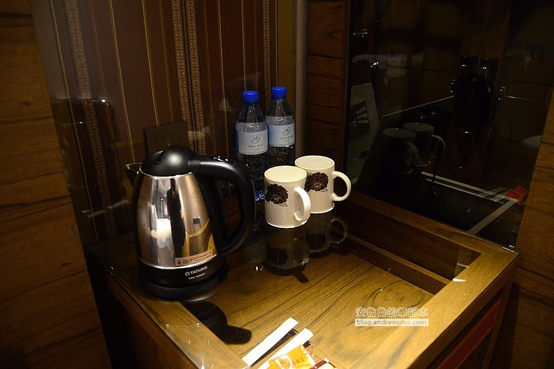 ▼小桌子的抽裡面有茶包和三合一咖啡即溶包和攪拌棒,晚上想喝杯熱茶就可以直接用礦泉水煮熱泡茶包來喝,就不用再走出去買了