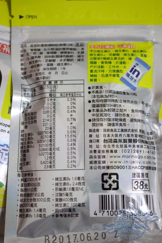 威德in電解補給錠一包有8顆,只賣38元,小7便利商店就有賣喔!