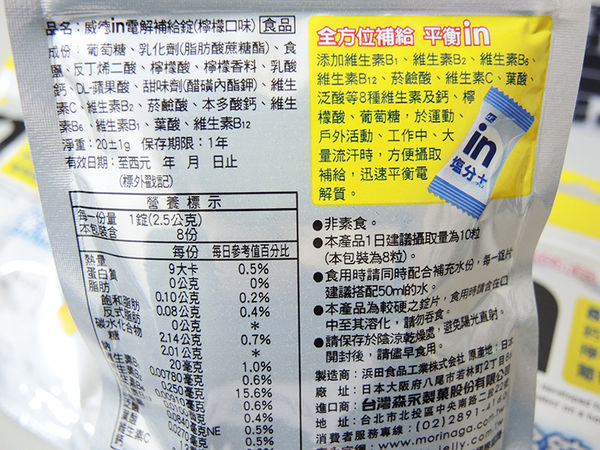 外包裝是夾鏈袋,打開後還有一顆顆獨立包裝的電解補給錠,產品為日本所製的食品並非保健品喔!