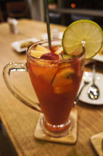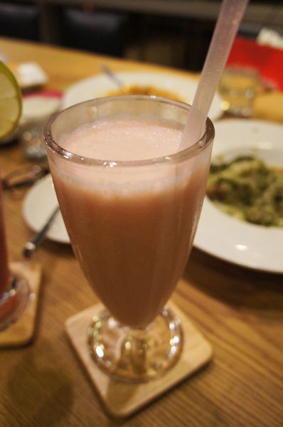 飲料的部分,我們點了水果茶,草莓香蕉果昔以及冰摩卡(由左至右)