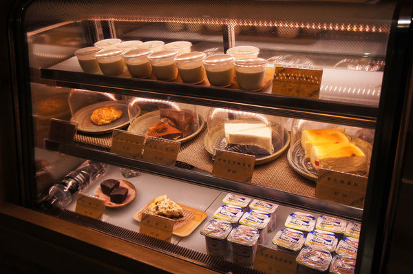 櫃檯旁的冰庫中放著各式的甜點,正當我彎身仔細打量著,想著今天不知道要點哪個來吃的時候,服務員親切的聲音突然冒出來:
