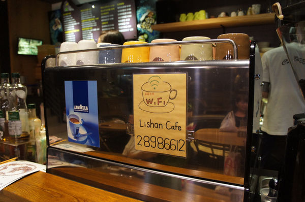 店內也有提供免費的WIFI喔!另外架上那一排各色的馬克杯也是很吸引我這個杯杯控的注意,可惜後來我們點的飲料都沒用到這種杯子~