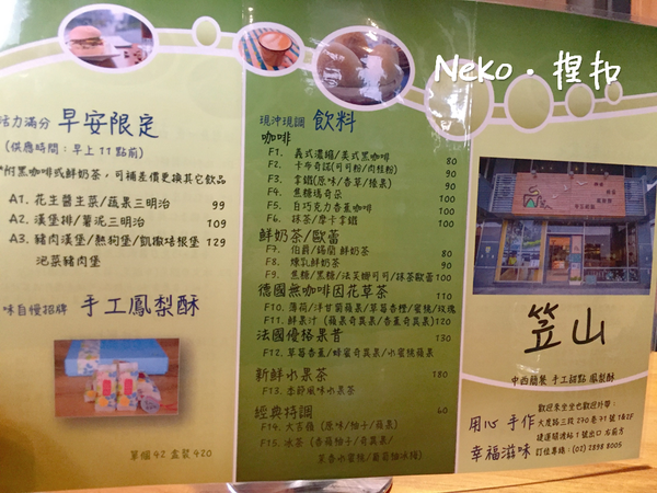 附上笠山咖啡完整菜單~