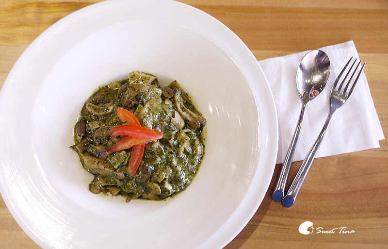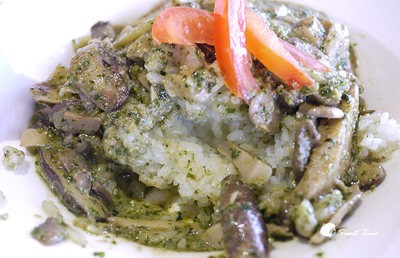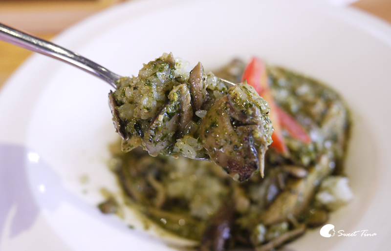 而這裡的燉飯在翻開後不是整個濃稠的醬料,感覺上是使用了橄欖油去拌炒的,這道都中了我和瑋爸二個的胃了,一致認為是舒服自然香氣的口感呢!