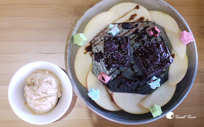 這份叫冰火布朗尼 $150 ,一球冰冰涼涼的焦糖蘋果冰淇淋 + 溫熱過後的布朗尼,所以是冰火的感受呢! 是道很誘人確很邪惡的甜點啊~