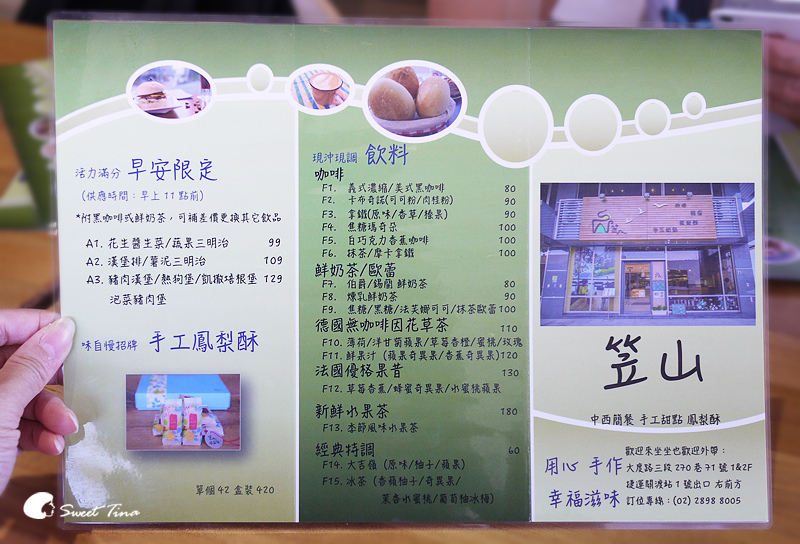 餐點上提供了輕食、熱食、甜點、飲品,而且笠山所有餐點皆使用天然食材自製、不添加任何人工香料、添加物,是間用心的店家呢!