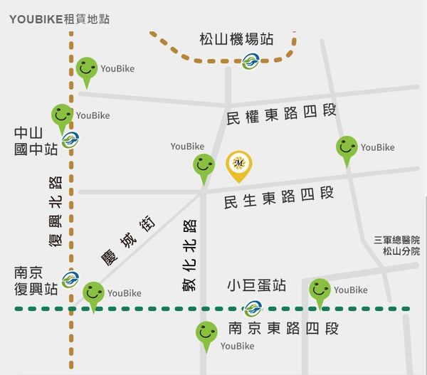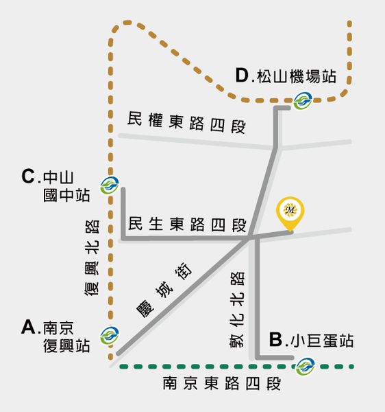 離捷運站南京復興站、台北小巨蛋站、中山國中站都很近