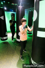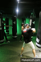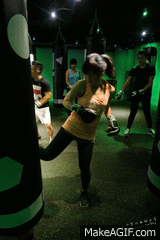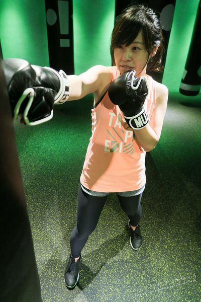 全神貫注的把上班一整天的壓力發洩在沙袋上!